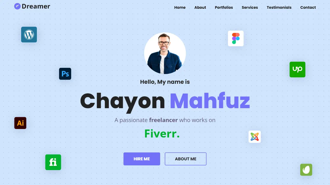 Dreamer is a One-Page Creative Website/Template. Responsive for all major Devices. This Modern & Cool template is 100% editable by Elementor.