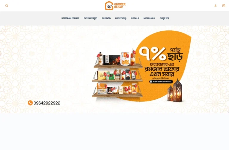 GhorerBazar is a Bangladeshi e-commerce platform specializing in organic health food and traditional grocery items, delivering safe and nutritious products directly to customers.